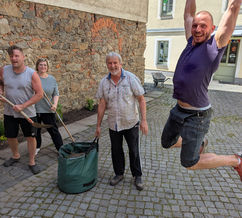 Ob Brunnen schrubben, Beete hübsch machen oder einfach mal den Dreckshaufen von gestern beseitigen – Arbeit gibt’s genug.
